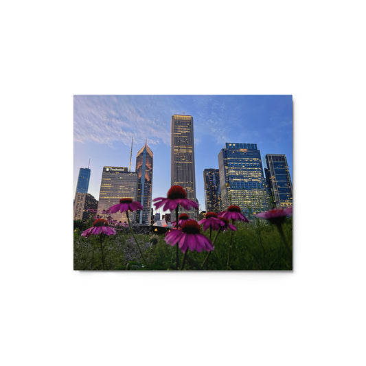 Chicago Skyline Photography Aluminum Metal prints | Chicago Flowers at Sunset